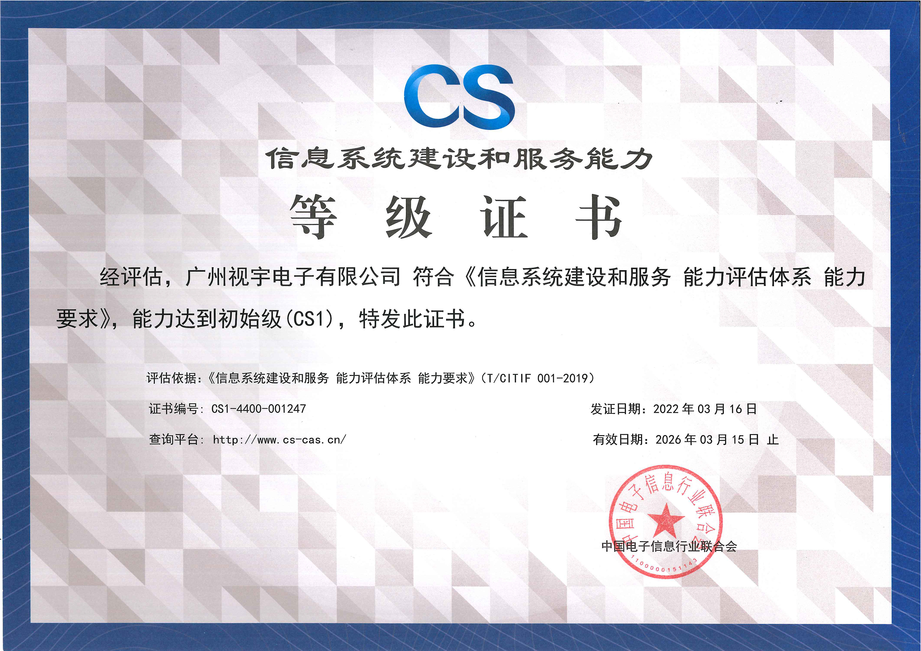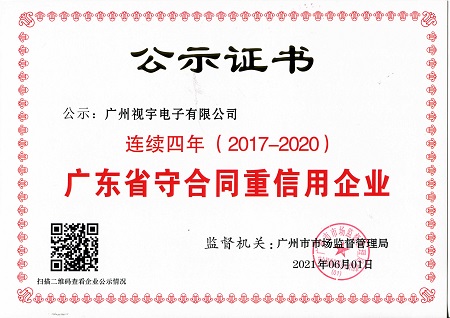 公司是广州市高新技术企业,持有多项软件著作权与专利发明,持有《广东省安全技术防范系统设计、施工、维修》资质,是广东省安全技术防范系统协会理事单位;具备信息系统建设和服务能力等级证书等。通过了ISO9000质量体系认证,ISO14001环境管理体系认证,ISO45001职业健康安全管理体系认证,ISO/IEC 27001 信息安全管理体系认证,ISO/IEC 20000信息技术服务管理体系认证;连续多年为广东省守合同重信用企业;多年广州市A级纳税企业,中国招标投标网认定3A信用等级等。
